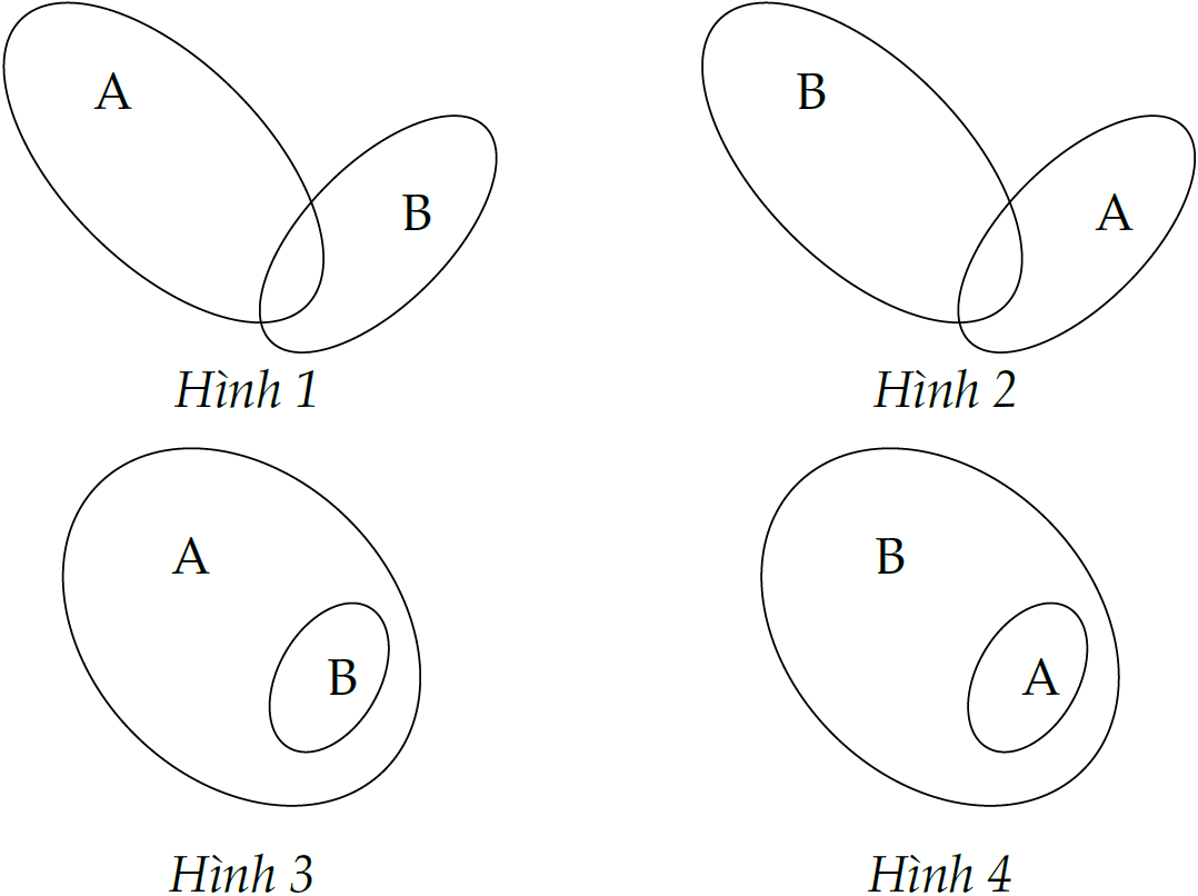 Hình nào sau đây minh họa tập \(A\) là tập con của tập \(B\)?