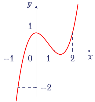 Gọi \(M,\,N\) lần lượt là giá trị lớn nhất, giá trị nhỏ nhất của hàm số \(y=x^3-3x^2+1\) trên đoạn \([1;2]\). Khi đó tổng \(M+N\) bằng