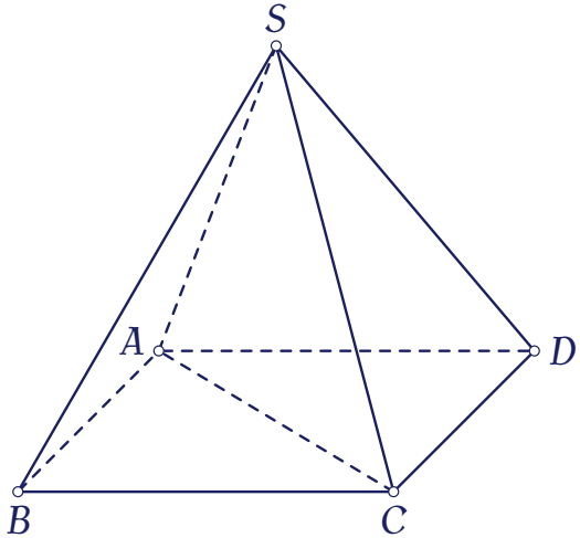 Cho hình chóp đều $S.ABCD$ có chiều cao $a$, $AC=2a$ (tham khảo hình bên).