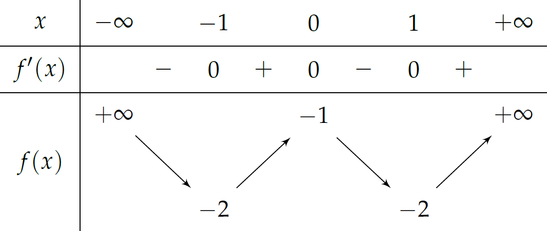 Cho hàm số trùng phương $f(x)=ax^4+bx^2+c$ có đồ thị như hình vẽ.