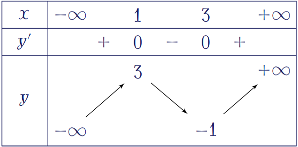 Cho hàm số $y=ax^3-3x^2+b$ ($a\neq0$) có bảng biến thiên như sau: