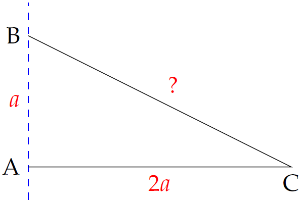 Cho tam giác \(ABC\) vuông tại \(A\) có \(AB=a\), \(AC=2a\). Tính độ dài đường sinh \(\ell\) của hình nón nhận được khi quay tam giác \(ABC\) quanh trục \(AB\).