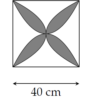 Một viên gạch hoa hình vuông cạnh \(40\) cm. Người ta đã dùng bốn đường parabol có chung đỉnh tại tâm của viên gạch để tạo ra bốn cánh hoa (phần tô đậm như hình vẽ).