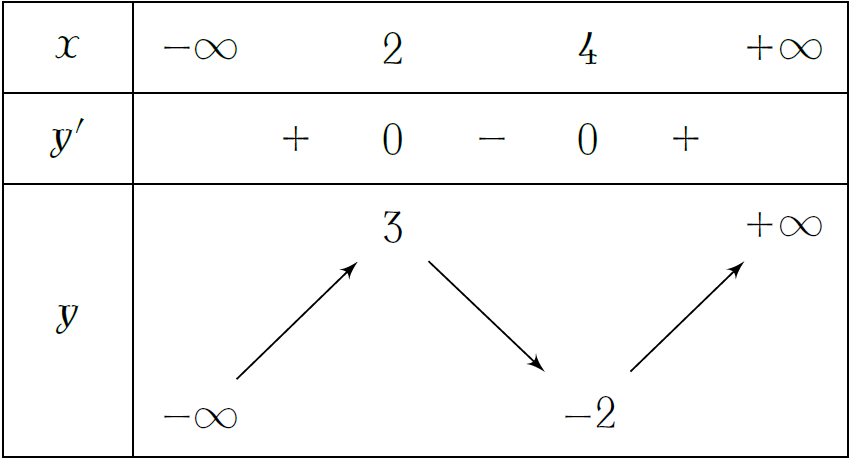 | \(y_{\text{CĐ}}=3\) và \(y_{\text{CT}}=-2\) |