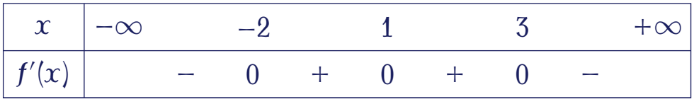 Cho hàm số $y=f(x)$ có đạo hàm trên $\mathbb{R}$ và có bảng xét dấu $f'(x)$ như sau: