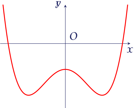 Cho hàm số $y=ax^4+bx^2+c$ có đồ thị là đường cong trong hình bên.