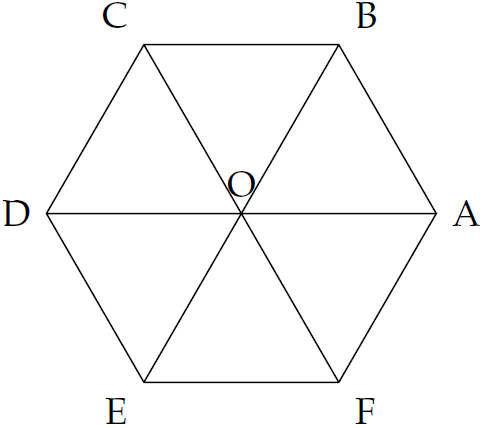 Cho lục giác đều \(ABCDEF\) có tâm \(O\). Có bao nhiêu vectơ đối của vectơ \(\overrightarrow{OC}\) mà có điểm đầu và điểm cuối là một trong các đỉnh và tâm của \(ABCDEF\)?