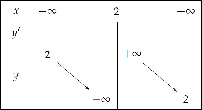 | Hàm số nghịch biến trên \((-\infty;2)\) và \((2;+\infty)\) | |