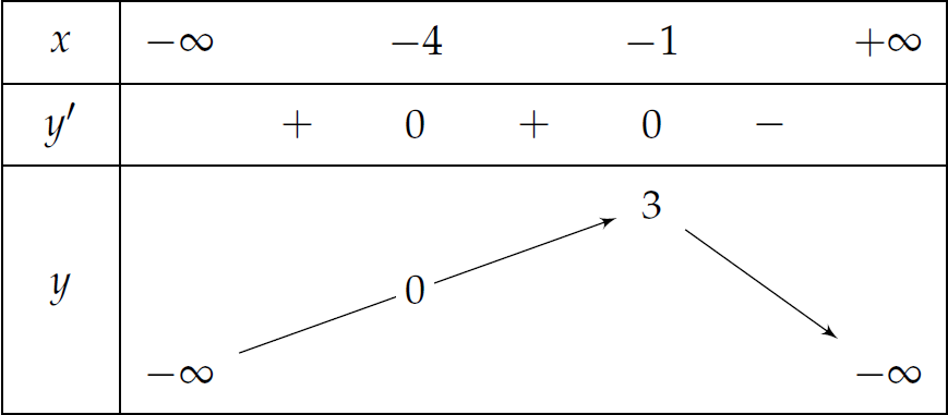 | Hàm số đồng biến trên khoảng \((-4;-1)\) |