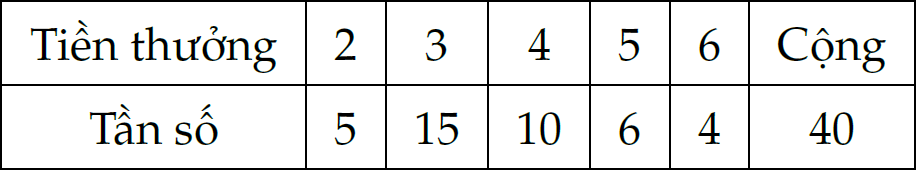 Tiền thưởng (triệu đồng) của nhân viên trong một công ty được cho ở bảng dưới đây: