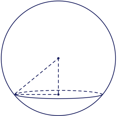 Cho một mặt cầu có bán kính là $5$cm. Một mặt phẳng cắt mặt cầu theo giao tuyến là một đường tròn (xem hình minh họa) cách tâm mặt cầu đã cho là $3$cm.