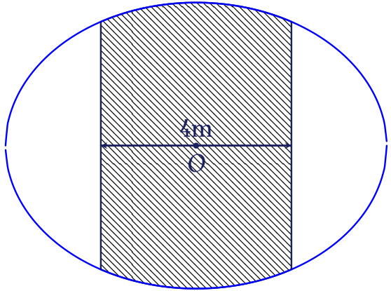 Một mảnh vườn hình elip có độ dài trục lớn $8$m và độ dài trục nhỏ $6$m. Người ta cần trồng rau trên dải đất rộng $4$m như hình vẽ.