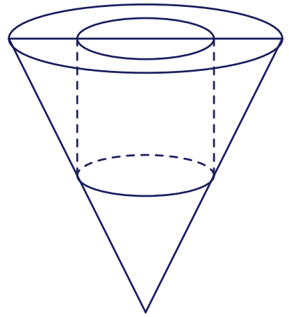 Một bình đựng nước dạng hình nón (không có nắp đậy), đựng đầy nước. Biết rằng chiều cao của bình gấp $3$ lần bán kính đáy của nó. Người ta thả vào bình đó một khối trụ và đo được thể tích nước tràn ra ngoài là $\dfrac{16\pi}{9}\text{dm}^3$. Biết rằng một mặt của khối trụ nằm trên mặt đáy của hình nón và khối trụ có chiều cao bằng đường kính đáy của hình nón (hình vẽ).