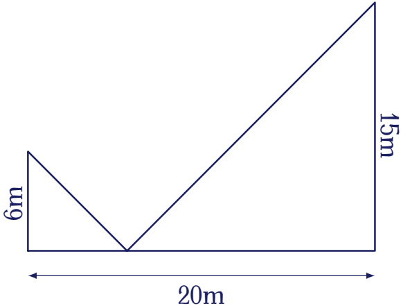 Cho hai cây cột có chiều cao lần lượt là $6$m, $15$m và đặt cách nhau $20$m (như hình minh họa).