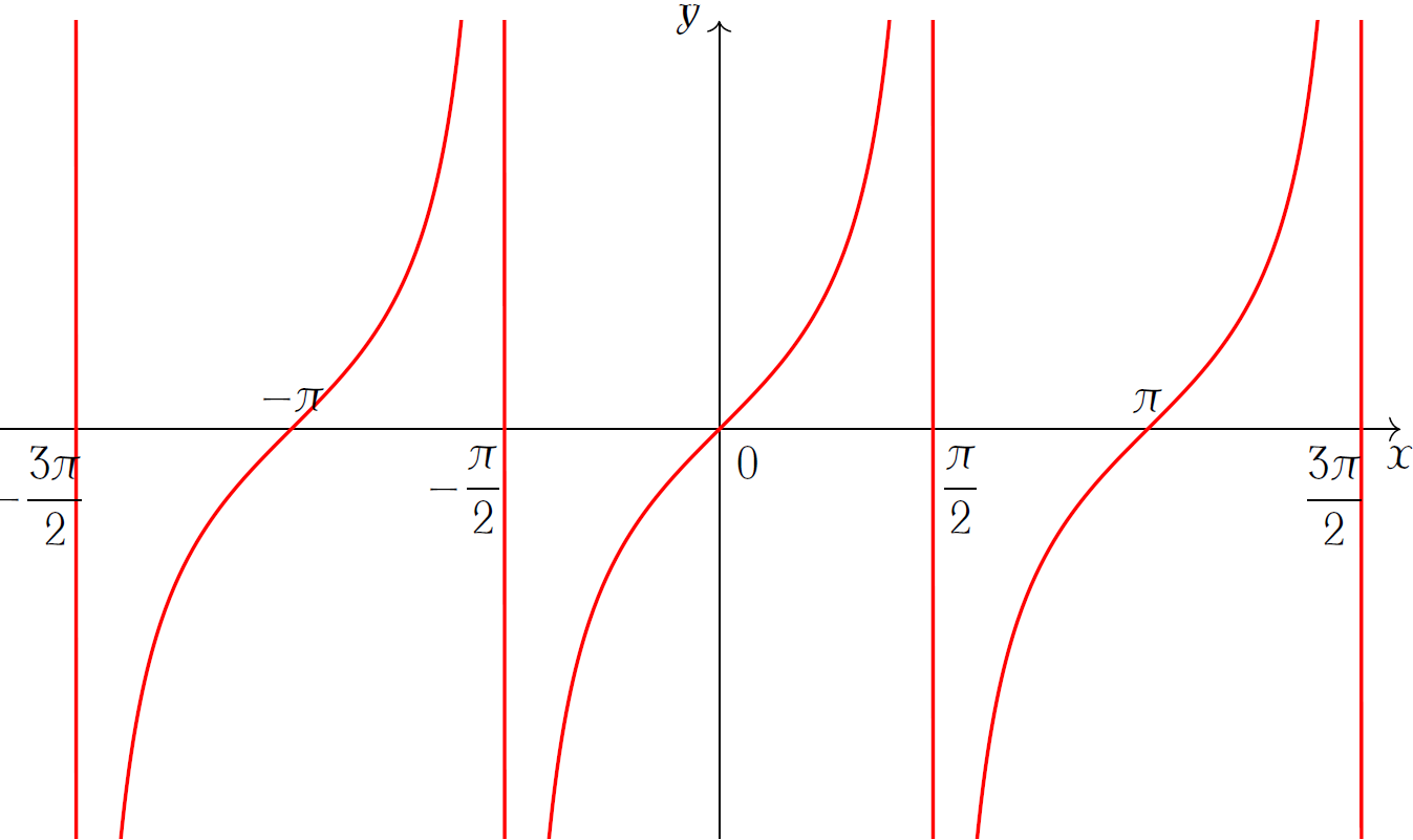 | \(\mathscr{D}=\mathbb{R}\setminus\left\{\dfrac{\pi}{2}+k\pi,\,k\in\mathbb{Z}\right\}\) | |
