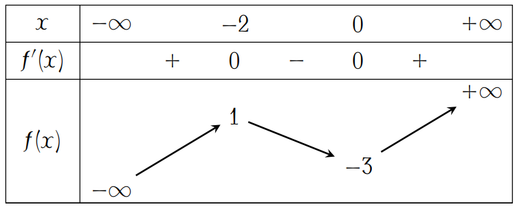 Cho hàm số \(y=f(x)\) có bảng biến thiên như hình. Gọi \(S\) là tập hợp các số nguyên dương \(m\) để bất phương trình $$f(x)\geq mx^2\left(x^2-2\right)+2m$$có nghiệm thuộc đoạn \([0;3]\). Số phần tử của tập \(S\) là