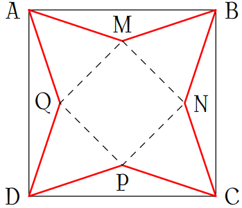 Từ một tấm bìa hình vuông \(ABCD\) có cạnh bằng \(5\)dm, người ta cắt bỏ bốn tam giác bằng nhau \(AMB\), \(BNC\), \(CPD\), \(DQA\).