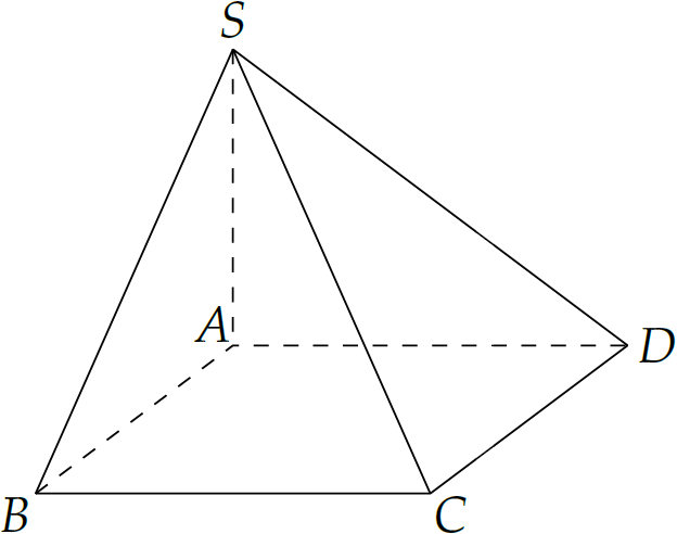 Cho hình chóp \(S.ABCD\) có đáy là hình vuông cạnh \(a\sqrt{3}\), \(SA\) vuông góc với mặt phẳng đáy và \(SA=a\sqrt{2}\) (như hình minh họa trên). Góc giữa đường thẳng \(SC\) và mặt phẳng \((ABCD)\) bằng