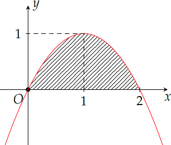 | \(S=\displaystyle\int\limits_{0}^{2}\left(\dfrac{1}{2}x^2-x\right)\mathrm{\,d}x\) |