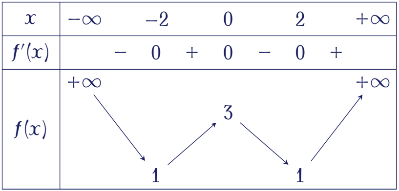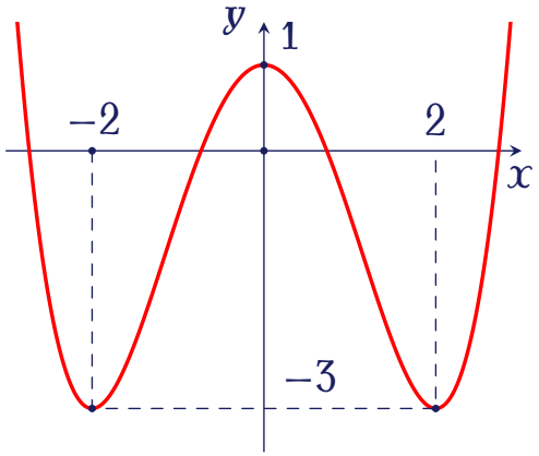 Cho hàm số trùng phương $f(x)=ax^4+bx^2+c$ có đồ thị như hình vẽ.