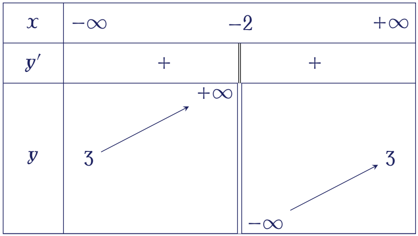 | Hàm số đồng biến trên các khoảng $(-\infty;1)$ và $(1;+\infty)$ | |