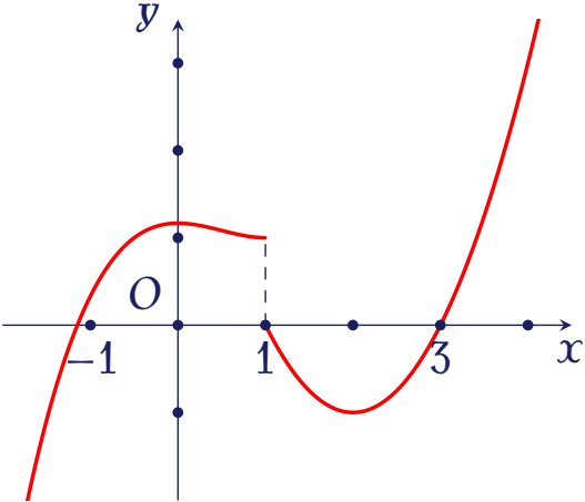 | Hàm số $y=f(x)$ gián đoạn tại điểm $x=1$ |