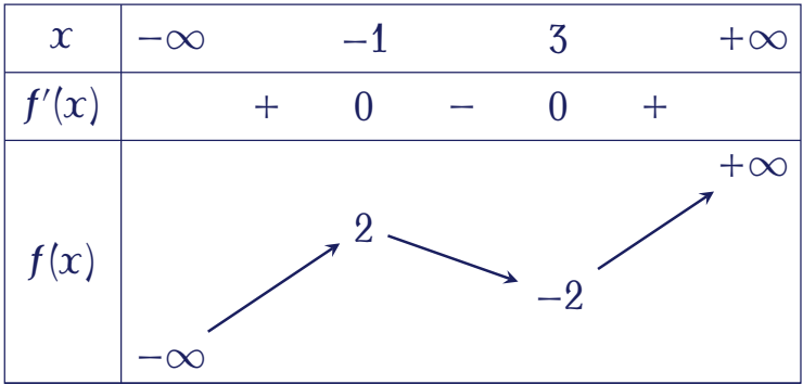 Cho hàm số $y=f(x)$ có bảng biến thiên như sau: