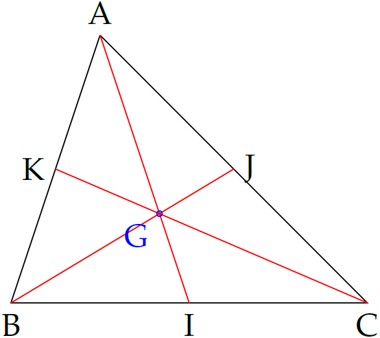Theo đề, ta có các đường trung tuyến \(AI,\,BJ,\,CK\).