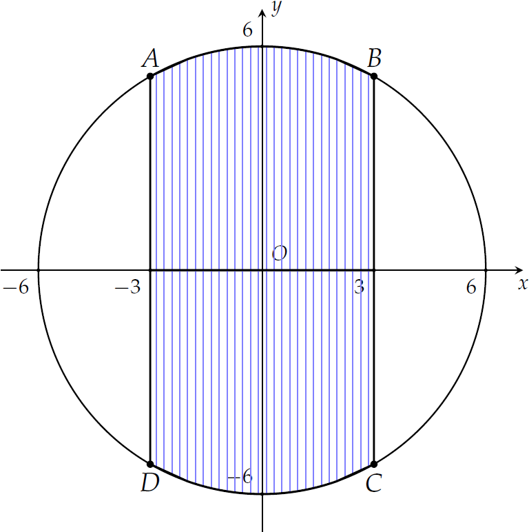 &=2\int\limits_{-3}^3\sqrt{36-x^2}\mathrm{\,d}x.\end{aligned}$$