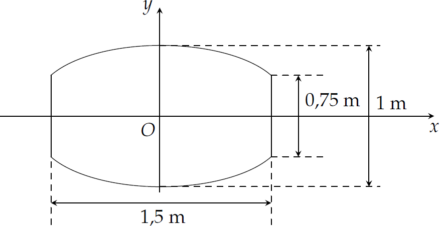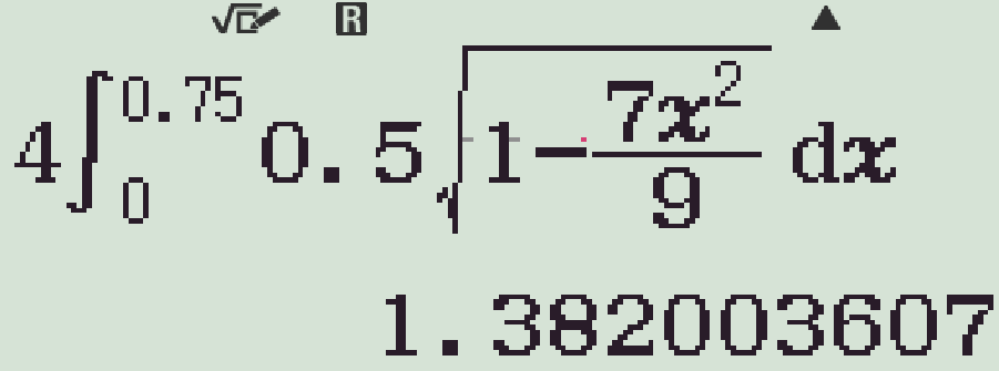 Diện tích của bảng hiệu bằng \(4\) lần diện tích tấm bảng trong góc phần tư thứ nhất nên $$S=4\displaystyle\int\limits_{0}^{0,75}0,5\sqrt{1-\dfrac{7x^2}{9}} \mathrm{\,d}x\approx1,4.$$