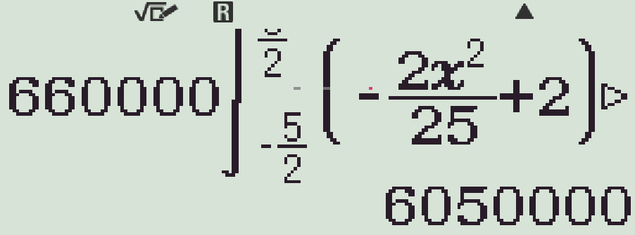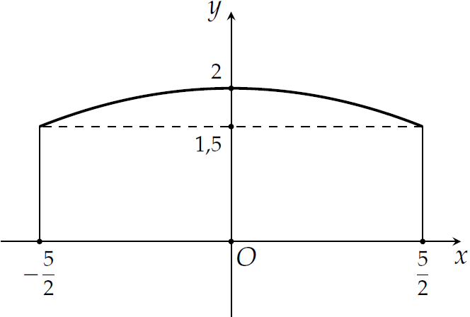 $$S=\displaystyle\int\limits_{-\tfrac{5}{2}}^{\tfrac{5}{2}}\left(-\dfrac{2}{25}x^2+2\right)\mathrm{\,d}x=\dfrac{55}{6}\;\left(\text{m}^2\right).$$