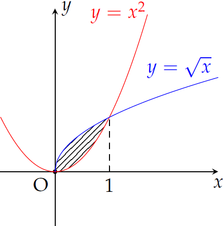 Tính thể tích \(V\) của vật tròn xoay tạo thành khi quay hình phẳng \((H)\) giới hạn bởi các đường \(y=x^2\) và \(y=\sqrt{x}\) quanh trục \(Ox\).