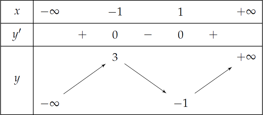Cho \(y'=0\Leftrightarrow x=\pm1\).