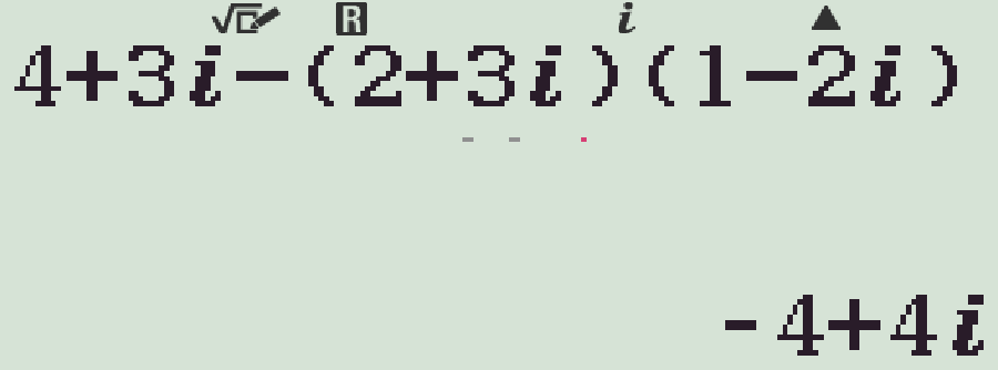Ta có \(4z=4+3\mathrm{i}-(2+3\mathrm{i})(1-2\mathrm{i})=-4+4\mathrm{i}\).