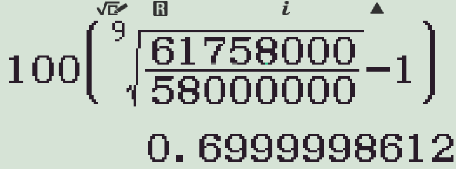 (1+r)^9&=\dfrac{T}{A}\approx1,0648\ldots\\