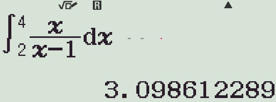 Dùng máy tính cầm tay ta có \(\displaystyle\int\limits_2^4\dfrac{x}{x-1}\mathrm{\,d}x\approx3,0986\ldots\)