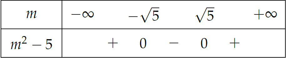 Suy ra \(m\in\left(-\sqrt{5};\sqrt{5}\right)\).