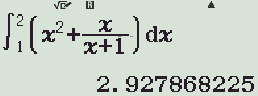 I&=\displaystyle\int\limits_{1}^{2}\left(x^2+\dfrac{x}{x+1}\right)\mathrm{\,d}x\\