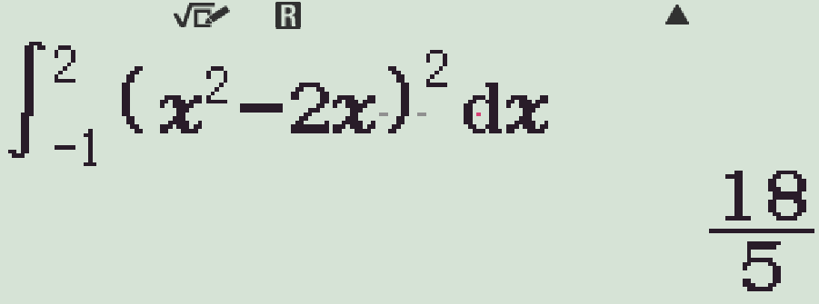 V&=\pi\displaystyle\int\limits_{-1}^{2}\left(x^2-2x\right)^2\mathrm{\,d}x\\