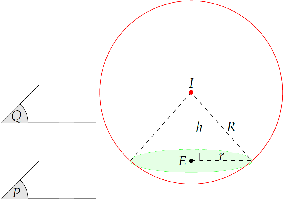 Vậy bán kính của \((S)\) là $$R=\sqrt{r^2+h^2}=\sqrt{8^2+\sqrt{3}^2}=\sqrt{67}\quad(2)$$