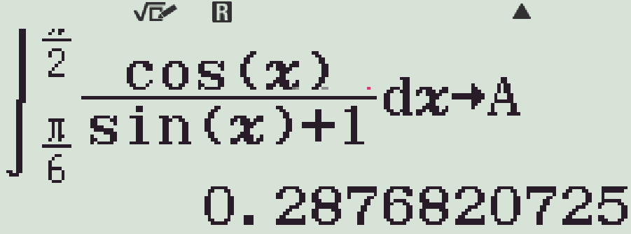\displaystyle\int\limits_{\tfrac{\pi}{6}}^{\tfrac{\pi}{2}}\dfrac{\cos x}{\sin x+1}\mathrm{\,d}x&=\displaystyle\int\limits_{\tfrac{3}{2}}^{2}\dfrac{1}{u}\mathrm{\,d}u\\