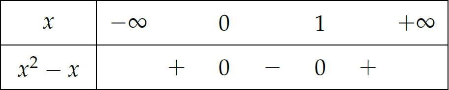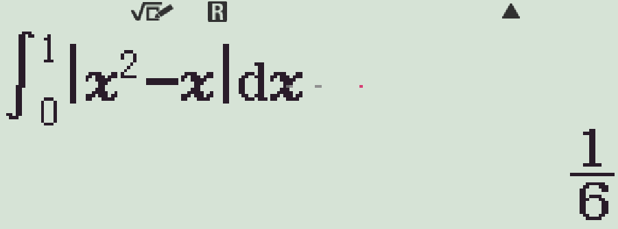 S&=\displaystyle\int\limits_{0}^{1}\left|x^2-x\right|\mathrm{\,d}x=\displaystyle\int\limits_{0}^{1}\left(x-x^2\right)\mathrm{\,d}x\\