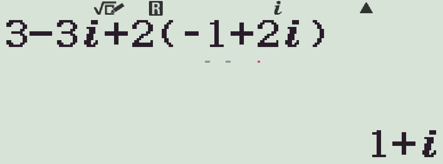 \(w=(3-3i)+2(-1+2i)=1+i\).
