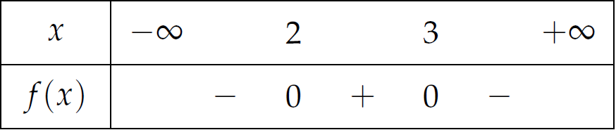 Theo đó, \(f(x)>0\Leftrightarrow x\in(2;3)\).