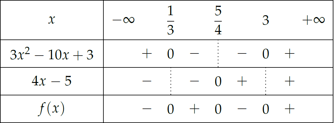 | \(x\in\left(-\infty;\dfrac{1}{3}\right)\cup\left(\dfrac{5}{4};3\right)\) | |