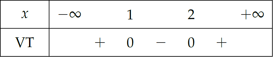 Tập nghiệm của bất phương trình \(x^2-3x+2<0\) là
