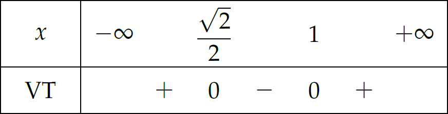 Tập nghiệm của bất phương trình \(\sqrt{2}x^2-\left(1+\sqrt{2}\right)x+1<0\) là