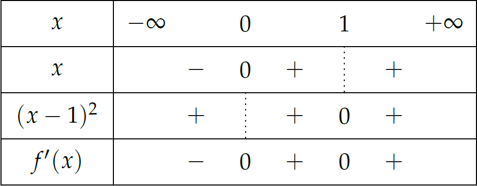 \(f'(x)=0\Leftrightarrow\left[\begin{array}{l}x=0\\ x=1\end{array}\right.\)