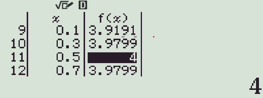 Bước 3. Quan sát giá trị của \(f(x)\), chọn giá trị lớn nhất (có thể chỉ gần đúng).