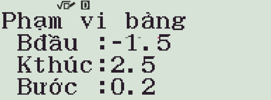 Ta có thể kiểm tra giá trị lớn nhất của hàm số đã cho trên đoạn \(\left[-\dfrac{3}{2};\dfrac{5}{2}\right]\) bằng chức năng TABLE trên máy tính cầm tay.